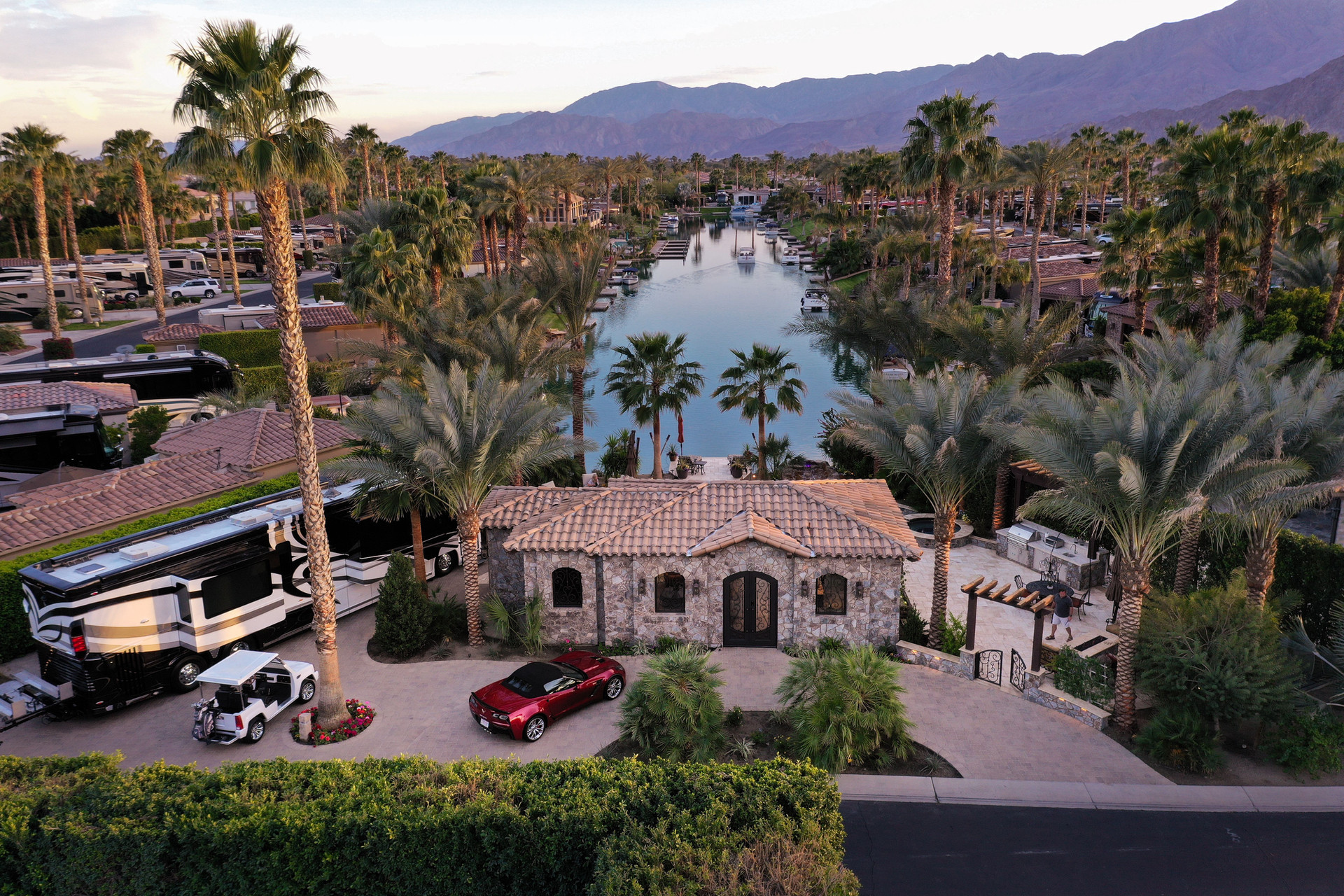 Motorcoach Country Club (MCC) in Indio, CA, nestled south of Palm Springs and adjacent to La Quinta, is a premier Class “A” motorhome resort unlike any other. Known for its stunning beauty, MCC spans 80 acres with 400 privately owned properties that boast breathtaking mountain views, unique lot styles with "coach houses," and private swimming pools. Every waterfront lot features its own dock.