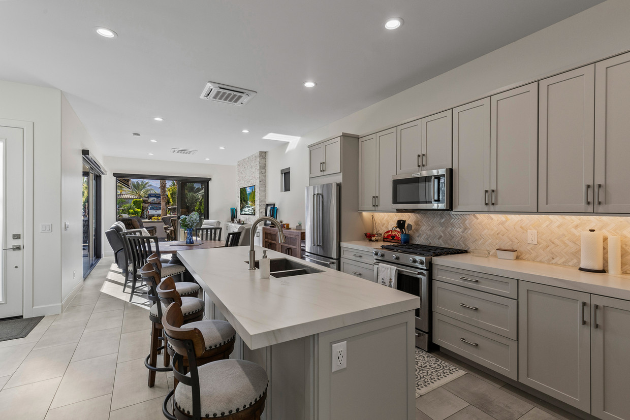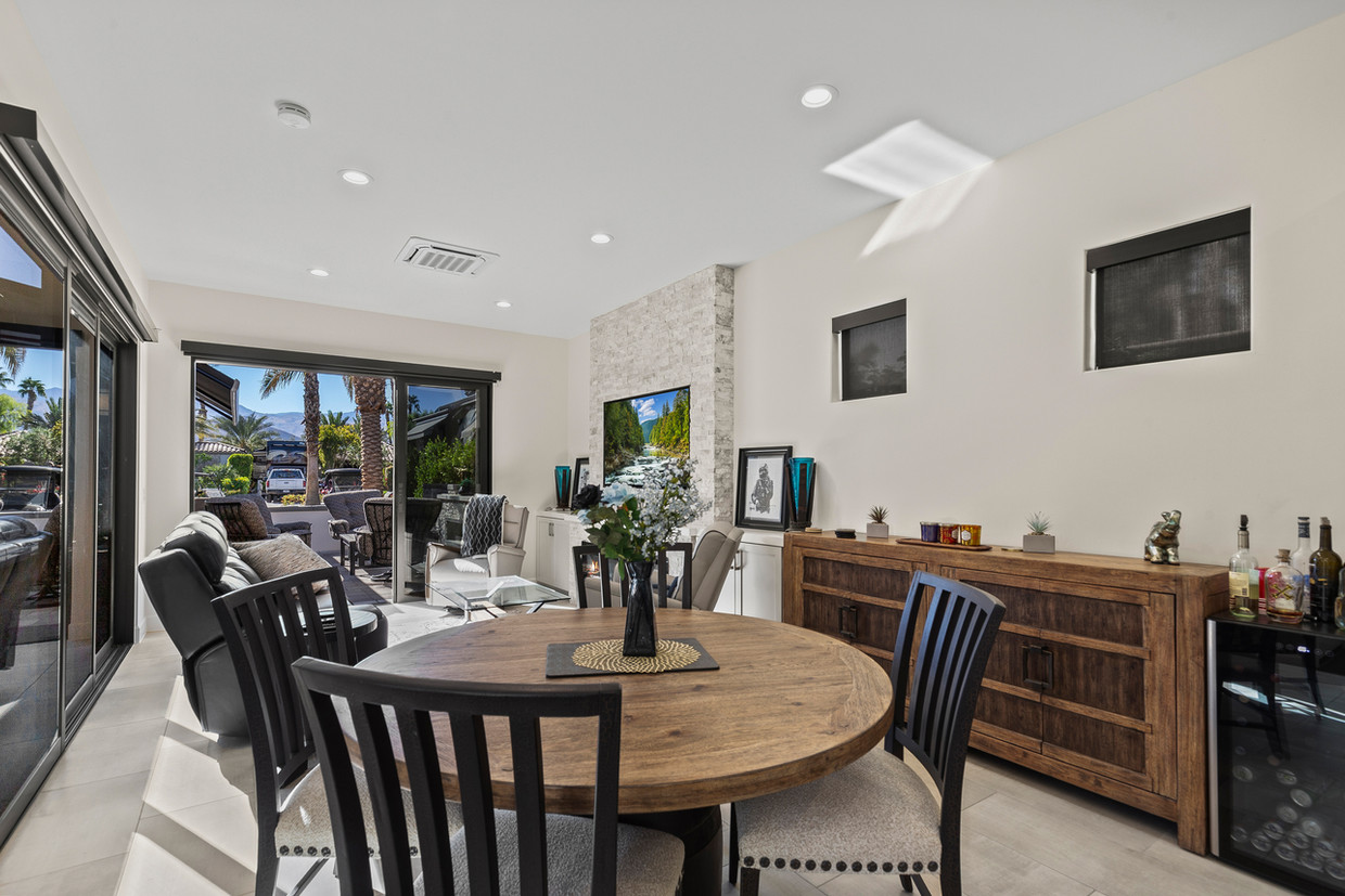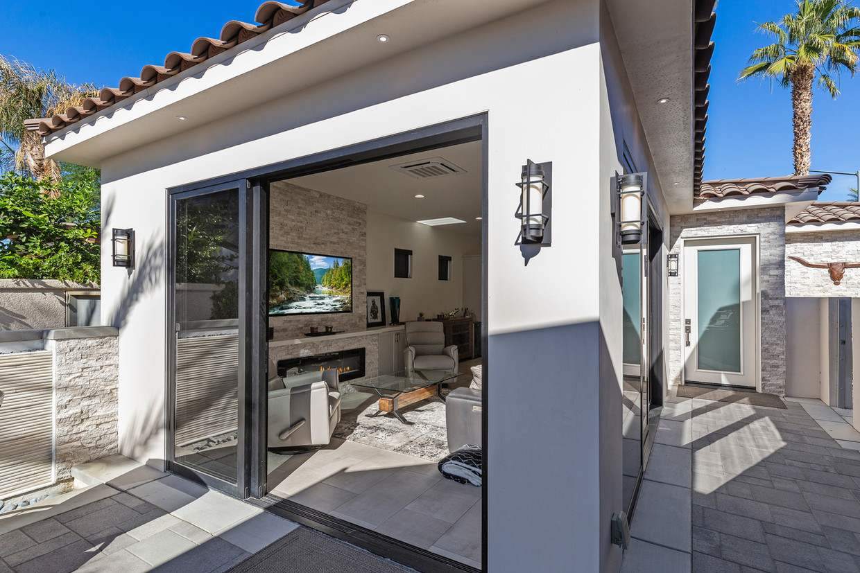 Seamless Indoor-Outdoor Living: Sliding glass doors with electric privacy shades allow you to embrace the desert breeze or enjoy full privacy with the touch of a button.