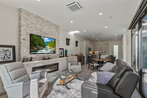 Entertainment Ready: A cozy electric fireplace and built-in surround sound system elevate your evenings.