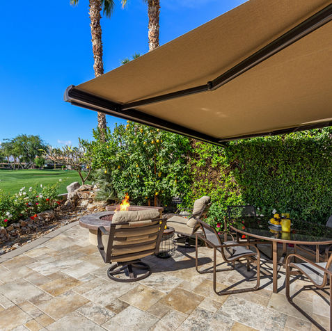 The lot is thoughtfully landscaped with lush plants and mature trees that provide ample shade, while the outdoor patio offers a tranquil escape. Start your mornings by the waterfall, spend your afternoons soaking up the sun, and gather around the fire pit in the evenings — all with panoramic views of the golf course and mountains.