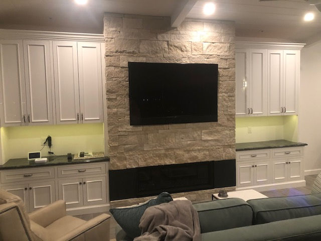 The kitchen is a chef's dream, equipped with bar seating and everything you need to prepare gourmet meals. Cozy up by the fireplace in the living area while watching your favorite shows on the large, mounted television—ideal for relaxing after a day on the greens or exploring the resort.