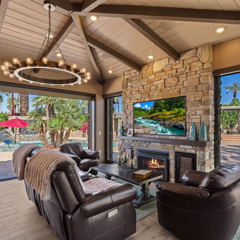 🔹 Bar sink, wine fridge, ice maker, electrical & USB outletsVaulted ceilings with stunning wood beams, elevating the space.