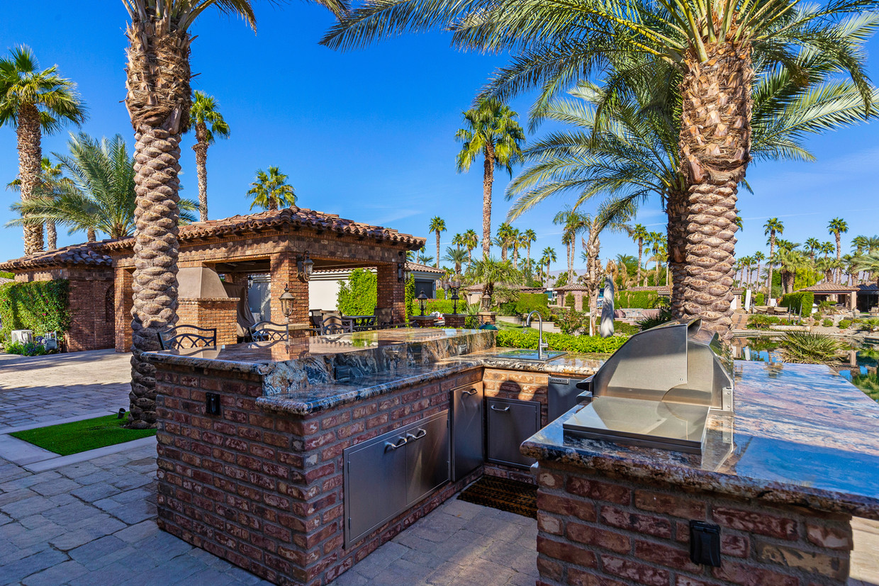 · Outdoor amenities include a barbecue island with a small refrigerator, dishwasher, washer, and dryer.